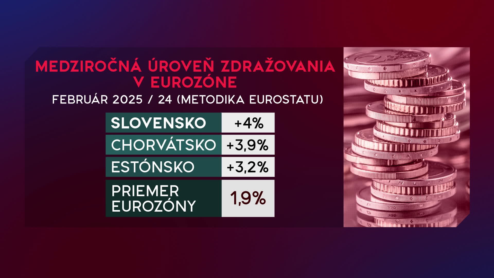 „Za Slovenskom bolo Chorvátsko s 3,9 percenta a Estónsko s 3,2 percenta,“ vysvetlil analytik. Priemer eurozóny je pritom približne na úrovni dvoch percent, čo je zároveň cieľ Európskej centrálnej banky.